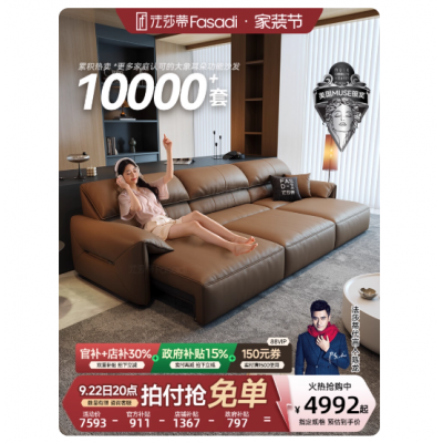 政府补贴法莎蒂大象耳朵零靠墙电动功能沙发简约客厅头层牛皮沙发